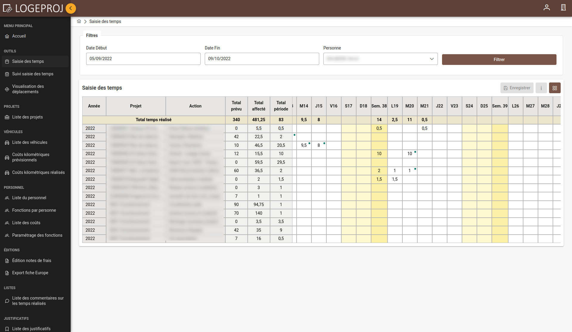 - NB : Logeproj affiche toujours des semaines entières (du lundi au dimanche).