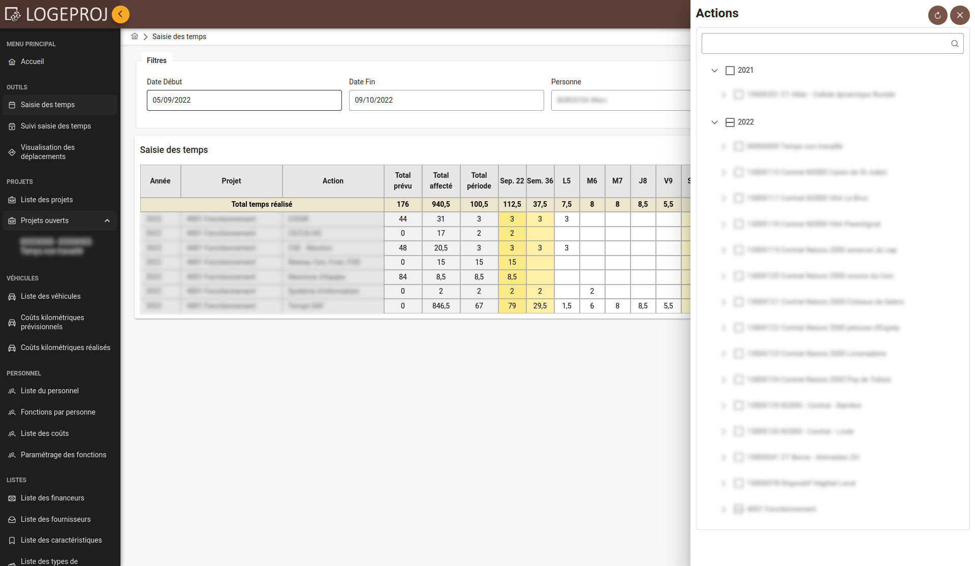 Cette fonctionnalité est optionnelle : si vous ne voyez pas les menus cités dans cette page, elle n'est peut-être pas activée dans votre version de Logeproj.